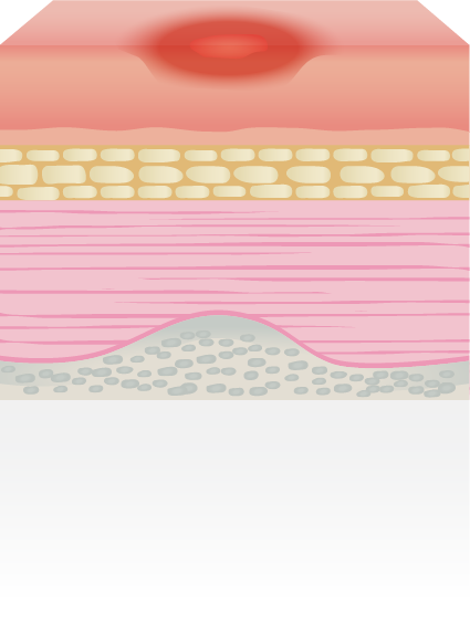 Leziunea a distrus complet pielea, ajungând la stratul de grăsime. Poate prezenta țesut mort (galben/maroniu) și miros neplăcut.