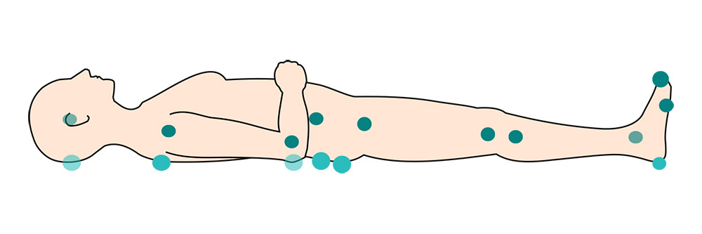 Imaginați-vă că obstrucționați un furtun de grădină – fluxul de apă se oprește. Același lucru se întâmplă cu vasele mici de sânge din piele. Când o zonă a corpului, de obicei o proeminență osoasă (călcâie, șolduri, zona sacrală, coate, omoplați), este presată constant de o suprafață (pat sau scaun), circulația sângelui este blocată. Fără oxigen și nutrienți, celulele pielii și ale țesuturilor încep să moară, ducând la apariția unei răni. Acest proces poate începe în doar câteva ore.